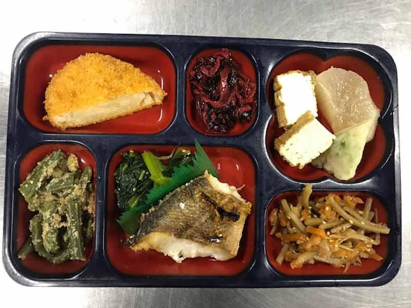 介護施設、デイサービス向け弁当・・・デイサービスをはじめとした高齢者施設様向けに、栄養バランスのとれたお弁当をお届けします。ご高齢の利用者様にも美味しく召し上がっていただけるよう、味付けや食べやすさに配慮したメニューです。
